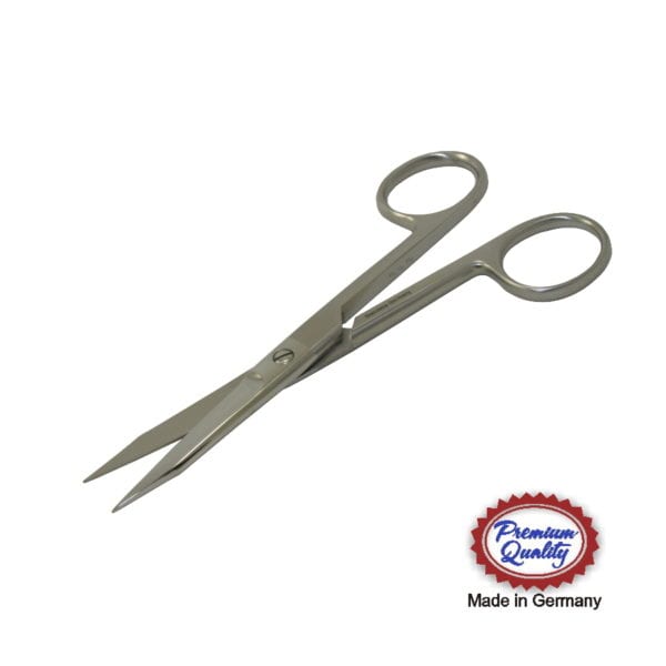 Converse Scissors with double edge, semi sharp edges, straight blades, overall length 5 1/8″, compared to Storz N5025, Premium German Stainless Steel