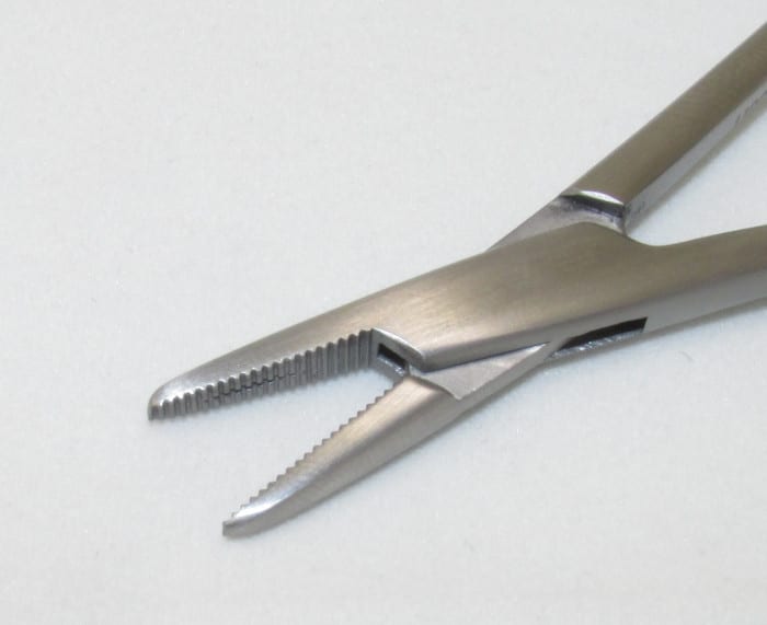 Derf Needle Holder, Straight Heavy 13mm serrated jaws with lengthwise grooves; overall length 5.1 inches