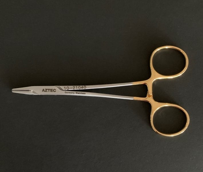 Halsey Needle Holder with tungsten carbide serrated jaws, 5.2″ length, Premium German Stainless Steel